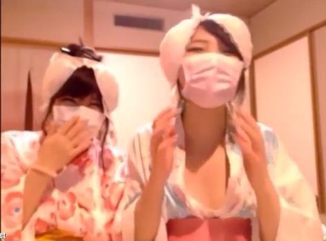 エロ動画 可愛い美乳マスク美女たちが浴衣を脱ぎ生おっぱいを揉み悪ふざけエロ配信[エロライブチャット]